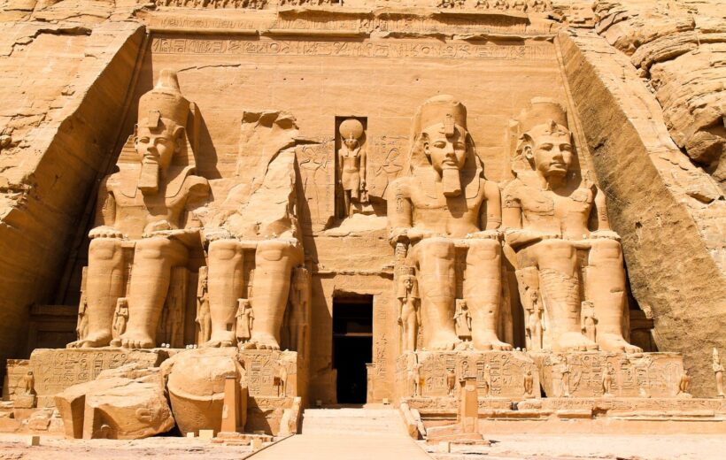 The Abu Simbel temples are one of Egypt’s most iconic and awe-inspiring ancient landmarks, located in the Nubian desert near the Sudanese border. Carved directly into a sandstone cliff, these monumental temples were built by Pharaoh Ramses II in the 13th century BC to honor himself and his queen, Nefertari, and to commemorate Egypt’s victory at the Battle of Kadesh. The larger of the two temples is dedicated to Ramses II, with colossal statues of the pharaoh flanking the entrance, while the smaller temple honors Nefertari, featuring statues of her and Ramses of equal size—a rare display of the queen’s elevated status.